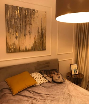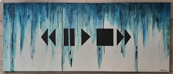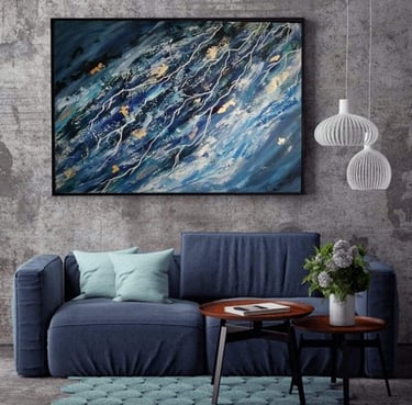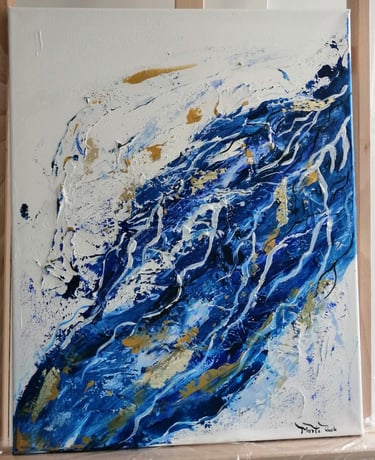 Technika: akryl na płótnie kładziony pędzlami i szpachlą. Na obraz została nałożona pasta strukturalna oraz płatki złota.